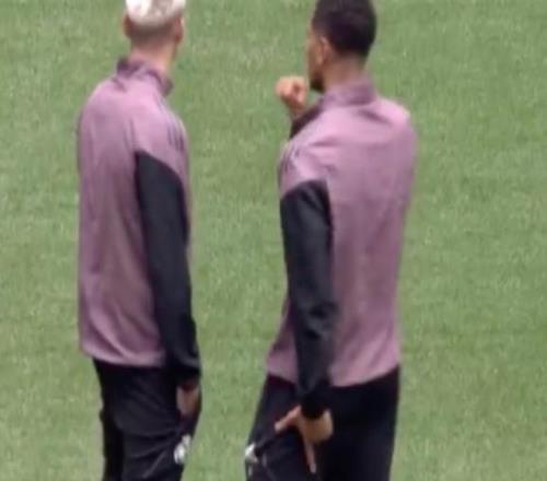据西班牙六台的消息,贝林厄姆在比赛开始前与马斯坦托诺交谈时,就摸着自己左大腿肌肉。