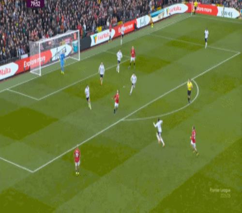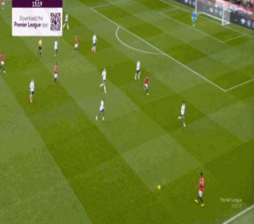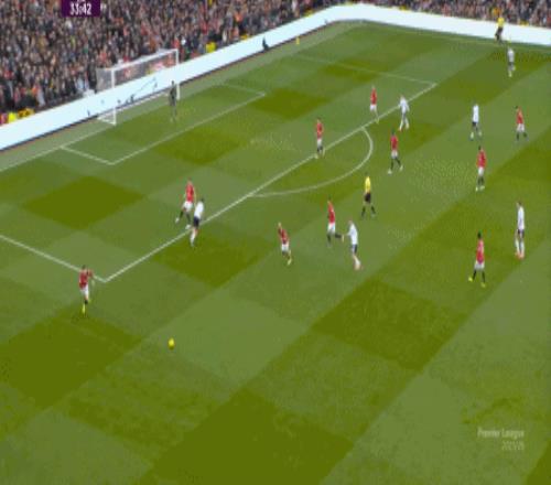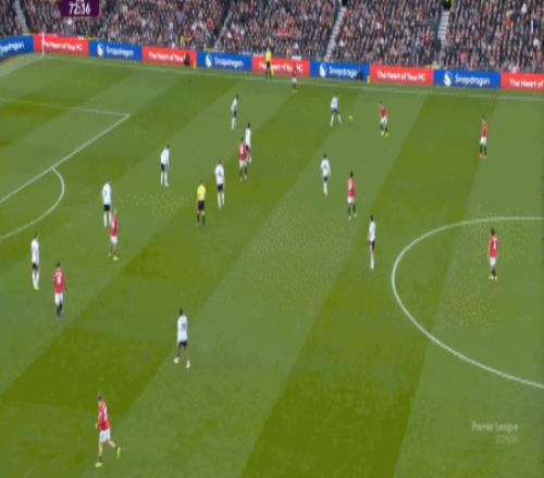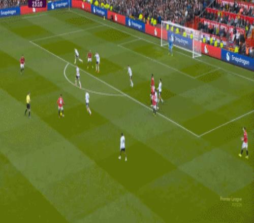 所以,在中后场已经开始面对压力的时候,曼联漏风是一方面,但找到方法给对手也制造压力是更重要的另一方面,在第5分钟,他们找到了这个方向: