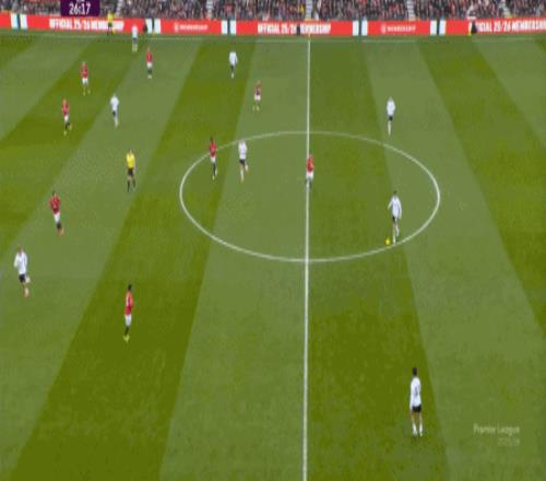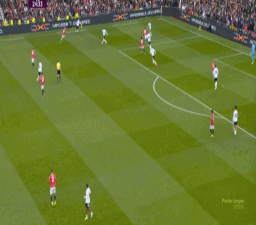 这显然是找对进攻方向的合理收获,但是,曼联的防守压力并未因此减轻,富勒姆在这一侧承压,但也能在这一侧直接向前,不管是在丢球前: