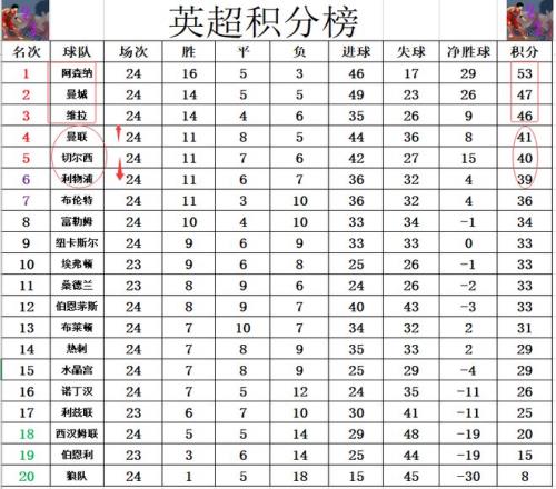 英超最新积分战报阿森纳又开心!曼城2球领先遭绝平曼联重回前4