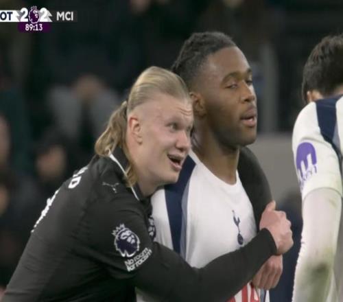 之所以被很多球迷不满,是因为哈兰德在比赛当中展现出来的态度,面对热刺的凶狠防守,哈兰德并没有给出足够强势的回应,反而嘻嘻哈哈的看起来非常开心,似乎并没有将比赛的胜利看在眼中。尤其是比赛最后时刻,第89分钟曼城获得角球机会,哈兰德被热刺的乌多吉抱摔放倒,但是爬起来的哈兰德依然没有给出回应,反而是和对手抱在了一起,也难怪会有球迷调侃“哈兰德本场比赛抱住热刺球员的次数比他的进球还多。”